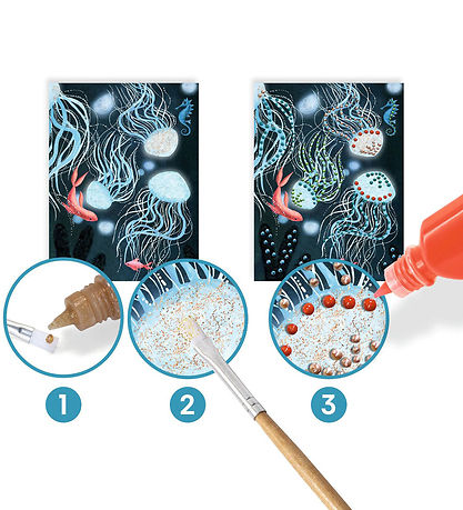 Djeco malesettet er perfekt for de kreative små. For å fylle de 4 plankene med de vakre motivene, må barnet lage 3D malingsflekker med en blank effekt på relieffene.