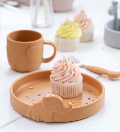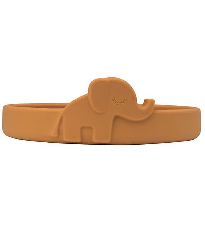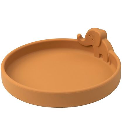 Praktisk Done by Deer tallerken i gul silikon, med en elefant på siden.
