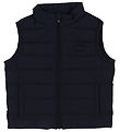 Nydelig EA7 dunvest i ensfarget navy i glatt vevd kvalitet, og på venstre side foran er det trykt logo.
