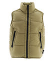 Emporio Armani dunvesten har høy hals og smal kant i ermehullene. Dunvesten åpnes med glidelås med hakebeskytter og innvendig vindstolpe, og foran er det fleeceforede lommer som lukkes med skjult trykknapp. Dunvesten har en lett vattering med dun og fjær, og baksiden av ytterstoffet har et vannavstøtende belegg.