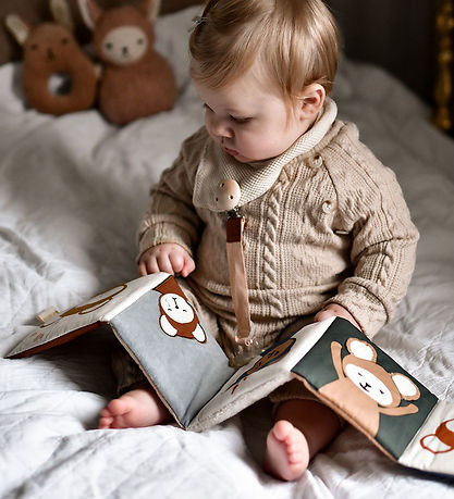 Fabelab stoffboken er sprø og kan foldes helt ut. Den består av 10 overflater som er morsomme å utforske. Stoffboken er en morsom leketøy med både berørings- og lydeffekter som utvikler barnets finmotorikk og kognitive evner.