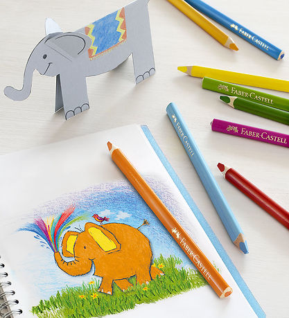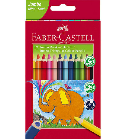 Faber-Castell fargeblyanter har en ergonomisk, trekantet form og finnes i en jumbo-versjon, som er perfekt for barnehender. Fargeblyantene kommer i vakre farger og har en miljøvennlig, vannbasert lakk og er beskyttet mot at blyet knekker. Treet er fra bærekraftige trær.