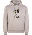 Fila hettegenseren har en fast hette med bomullsfôr. Den har lange ermer og myke ribbekanter, og det er en kengurulomme foran.