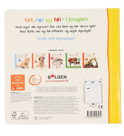 boken Forlaget Bolden er en morsom lytte-, berørings- og følelsesbok om forskjellige dyr som lever i jungelen. Den inneholder vakre berørings- og følelseseffekter, og når barnet tar på dyrene sier de dyrelydene deres. Boken stimulerer sansene og utvikler barnets språk. Boken har flotte illustrasjoner og tekst på sidene.