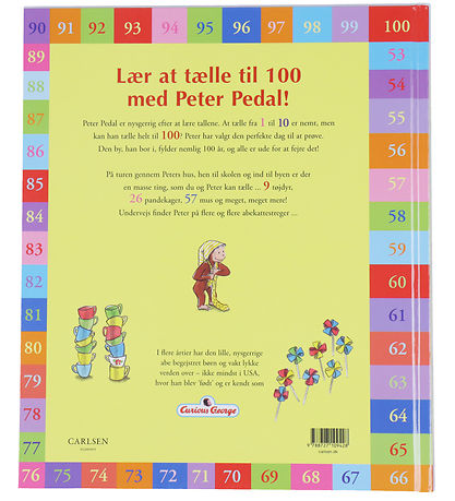 boken, Forlaget Carlsen, inneholder en flott historie om den nysgjerrige ape Peter Pedal, som teller til 100 underveis ved å telle det han møter på veien. Boken er innbundet.