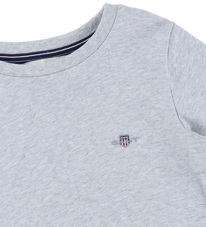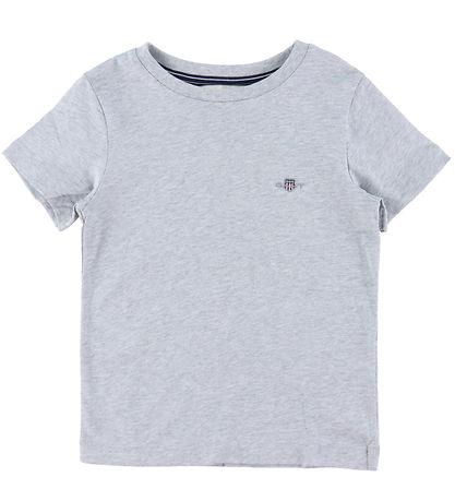 Vakker GANT t-skjorte i en lys, melert grå med en liten, brodert logo på venstre bryst.