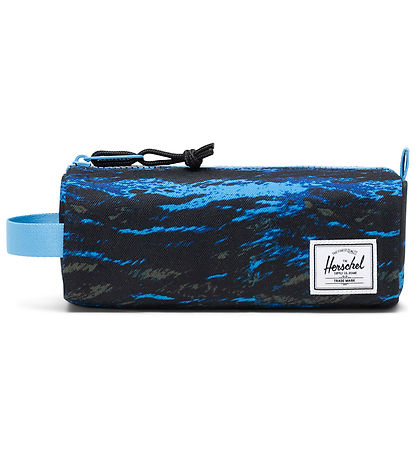 Fint Herschel penal i marineblå med et bølget allovertrykk i fargen blå. Penal har lyseblå detaljer og en hvit logolapp foran. På Bak er det en hvit lapp å skrive navnet ditt på.