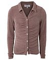 Hound skjorten har lange ermer, og i halsåpningen er det en klassisk krage. Skjorten lukkes med knapper, og det er vakre rynkedetaljer foran.