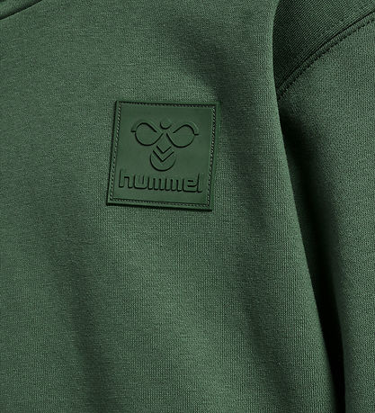 Stilig Hummel hettegenser i en mørkegrønn farge. Hettegenseren har en diskret Hummel logo på brystet, der logoen er preget inn i stoffet. Designet har en Fast hette og ribbekanter ved håndleddene og midjen, noe som gir en enkel finish.