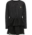 Søtt Hummel kjole i en vakker rosa. Kjolen har lange ermer og små trykknapper foran. På brystet kan du se Hummel logoen ved siden av en flott rysjedetalj.