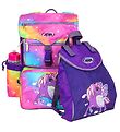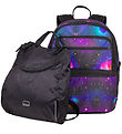 Jeva skolesekken består primært av to stor rom. Baksiden har en polstret laptoplomme som også kan brukes som romdeler, mens den neste har flere organisasjonslommer. Foran denne har skolesekken et smart rom med plass til medfølgende miniryggsekk for f.eks. sportsklær. Mini-ryggsekken kan festes med velcro øverst i rommet.