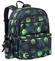 Kul Jeva skolesekk med camouflage i grønne nyanser. Foran er det en gummilogo med merkenavnet på.