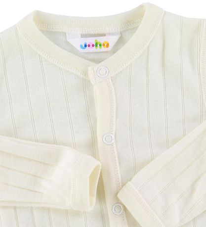 Jumpsuiten er kremfarget med rib.