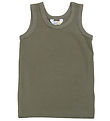 Joha undertrøyen har brede stropper og smale ribbekanter langs halsen og armåpningene med små blondedetaljer.