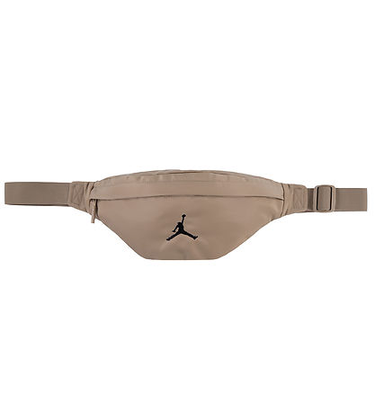Fin Jordan skulderveske i lysebrun med svart, brodert logo foran og "Jordan" brodert i svart på toppen.