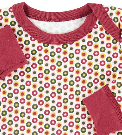 Vakker Katvig body med røde kanter og et vakker allover print av små epler i rosa, grønn og gule nyanser.