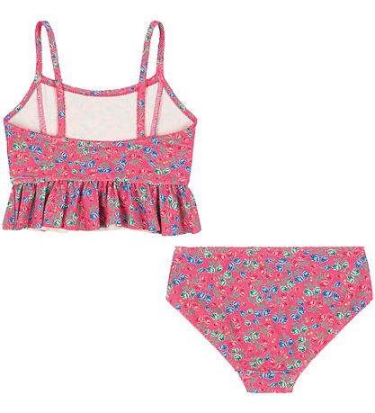Vakker Konges Sløjd bikini i en rosa fargetone dekorert med et blomstermønster i fargen blå og grønne nyanser.