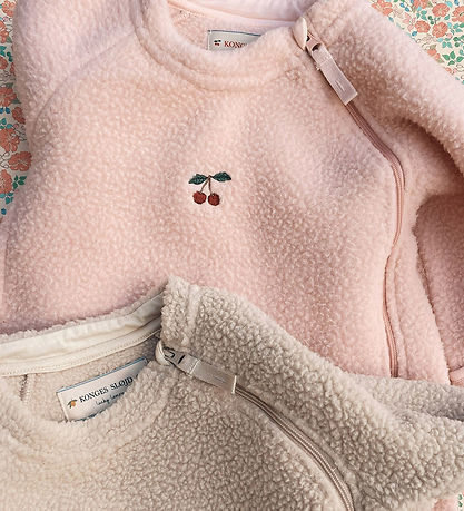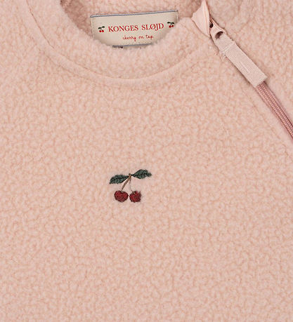 Nydelig Konges Sløjd fleecedress i lyserosa teddyfleece og med et liten, brodert kirsebær.