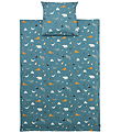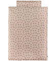 Søtt Konges Sløjd sengetøy i off white med små, blå prikker og et fint blomstertrykk i duse nyanser. Konges Sløjd sengetøyet består av et putetrekk med brettlukking og et dynetrekk som lukkes med glidelås i enden. Sengetøyet er laget av myk, økologisk bomull og kommer i en smart oppbevaringspose.