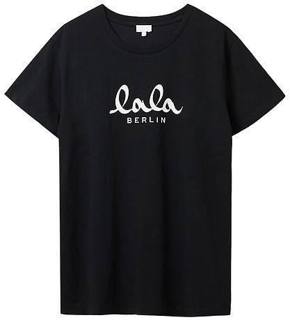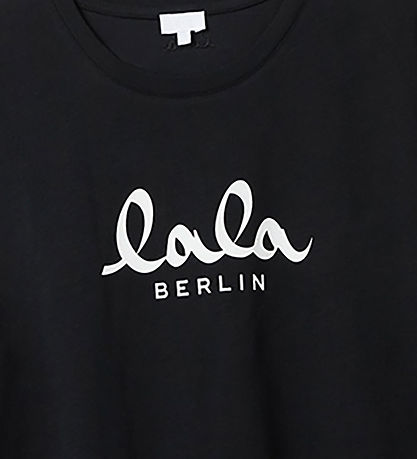 Fin Lala Berlin t-skjorte i svart, og på forsiden er det et stort, hvit logotrykk.
