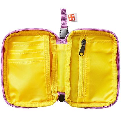 LEGO® vesken består av ett rom som lukkes med glidelås. På den ene siden av lommeboken er det lommer for tre kredittkort og en lomme for sedler, mens det på den andre siden er en glidelås for småpenger. På forsiden av lommeboken er det en glidelåslomme, og på baksiden av lommeboken er det en plastlomme for å reise- eller busskortet.