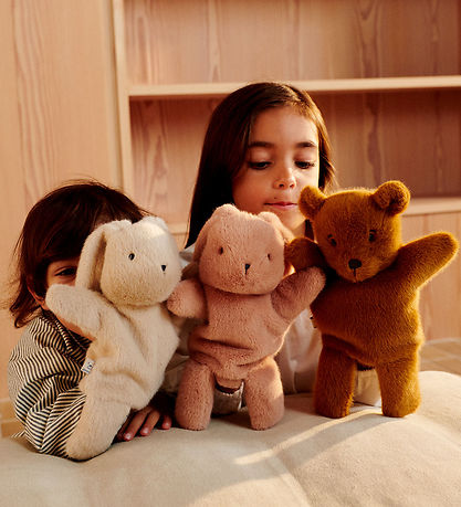Søt Liewood hånddukke i form av en beige kanin med lange ører.