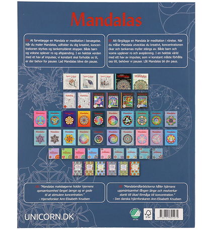 Mandala fargeleggingsboken inneholder 32 sider og er trykt på sterkt, bærekraftig kvalitetspapir. Maleboken er innbundet slik at hvert kort kan tas ut og henges på veggen eller brukes som kort.