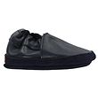 Nydelig Melton krabbesko i blått skinn med et søtt elefantdesign på foten.