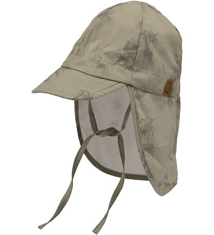 Praktisk Mikk-Line legionær hatt i en vakker olivengrønn nyanse. Mikk-Line legionærhatten har et vakker palme- og savanne-dyretrykk, som gir et fint og detaljert utseende. Perfekt for beskyttelse mot solen med en lang brem bak og en liten brem foran, samt knyting under haken.