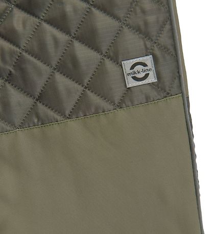 Nydelig Mikk-Line termoklær bestående av en termojakke og et par termobukser i støvet grønn med quiltet struktur.