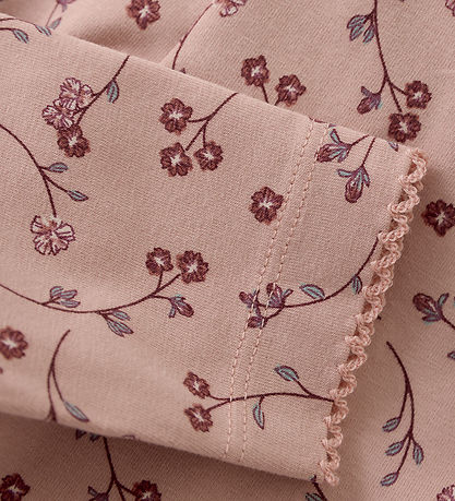 Fine Minymo leggings i en behagelig rosa med et vakker allover trykk av søte blomster. Minymo leggingsene har elastisk midje og vakre bølgete kanter ved anklene.