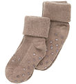 Vakre Minymo sokker selges i 2-pack i ensfarget brun med vakker ribbet design.