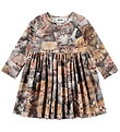 Vakker Molo kjole i lys rosa, prydet med pastellfarget sjømotiv nederst, med delfiner og skjell.