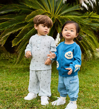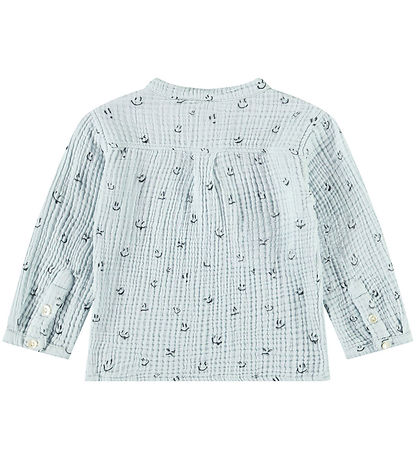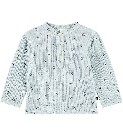 Sjarmerende Molo skjorte laget av muslin med lange ermer og i en lyseblå nyanse prydet med et fint smilende trykk. Skjorten har en knappelukking foran og en behagelig passform, ideell for hverdagsbruk.