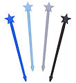 Fint MontiiCo barnebestikk med totalt 8 deler bestående av 4 gafler og 4 skjeer. Barnebestikket er i lysegrønn, turkis, lyseblå og blått.