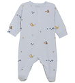 Müsli jumpsuiten har lange ermer og ben med brede kanter, og den åpnes med en glidelås med hakebeskytter. Glidelåsen kan åpnes både ovenfra og nedenfra.
