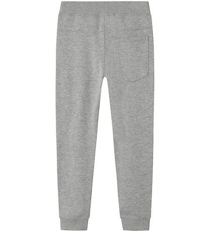 Moderne Name It joggebukse i en vakker grå og en diskret logo foran. Disse joggebukse er designet for komfort og brukervennlighet.