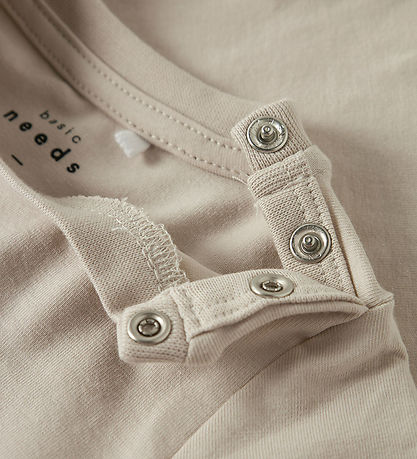 Name It t-skjorten har rund hals og korte ermer. Shortsene er en kort modell med elastisk kant i midjen som kan justeres med innvendige knapper. Det er dekorative knyting foran.