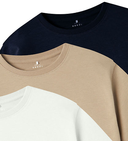 Deilig T-skjorte fra Name It selges som en 3-pack med t-shirts i hvit, beige og marineblå. T-skjortene har korte ermer og et enkelt design som gjør dem enkle å kombinere med andre stiler. Perfekt for hverdagsaktiviteter.