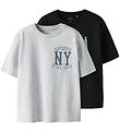 Vakre Name It t-shirts som selges i en 2-pack med følgende design:
