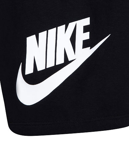 Fin Nike shorts i svart svette, og en hvit logo er trykt på venstre bukseben.