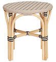 Vakker OYOY bord i naturlig brun rotting med flettet bordplate og svarte detaljer.