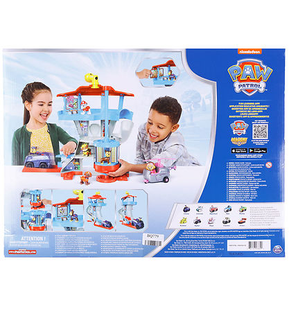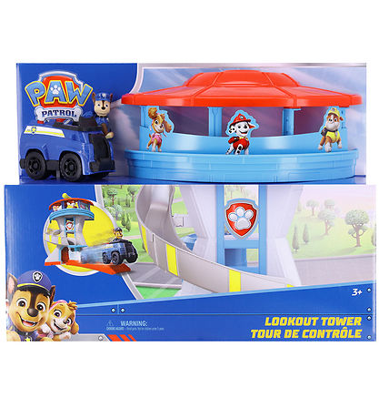 Paw Patrol kontrolltårnet består av flere etasjer hvor hundene kan forberede seg på å dra når noen trenger hjelpen deres. I toppetasjen er det en skjerm med informasjon om hvem som trenger hjelp, og 6 forskjellige skjermer er inkludert slik at hundepatruljen kan dra på forskjellige oppdrag. Chases politibil og to figurer er inkludert: Chase i uniform og Chase uten uniform.