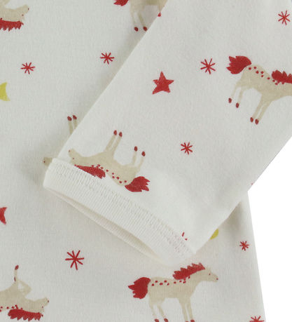 Sjarmerende nattdrakt fra Petit Bateau i hvit. Nattdrakten er dekorert med et heldekkende trykk av små, røde stjerner og søte hester.