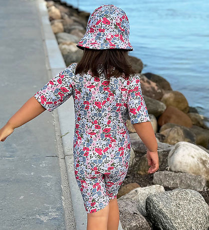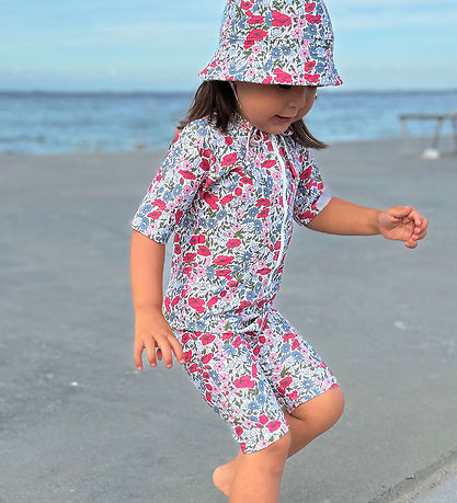 Smart Petit Crabe badedrakt i hvit med et over alt blomstertrykk i rosa og blå nyanser.