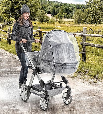 Regntrekket er både vind og regntett og sørger derfor for at vognen og barnet holder seg tørre og lettere holder varmen.
