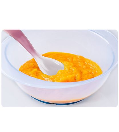 Når skjeen endrer temperatur, er maten fortsatt for varm til at barnet kan spise den.