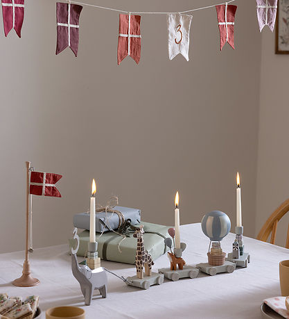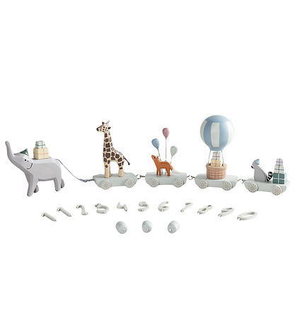 Sebra bursdagstoget er laget av tre, og vognene er satt sammen med metallkroker. Det er plass til tre bursdagslys, og det følger med 11 tall som kan settes på elefantens snabel. Bursdagstoget er en vakker pynt på barnets bursdag.