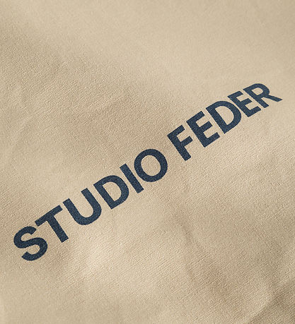 Studio Feder -lommeboken har en rektangulær design, er lett vattert og består av ett Rum som åpnes med glidelås. Toalettvesken er laget av myk bomull og kan brukes til å bringe orden på toalettkassene.