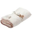 Dynen kommer i en flott veske med bærehåndtak i støvet grønn og grå.